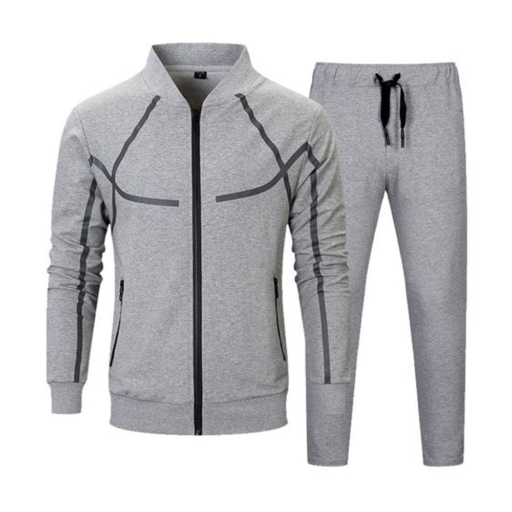 Men’s Light Grey Urban Tech Tracksuit with Black Geometric Accents